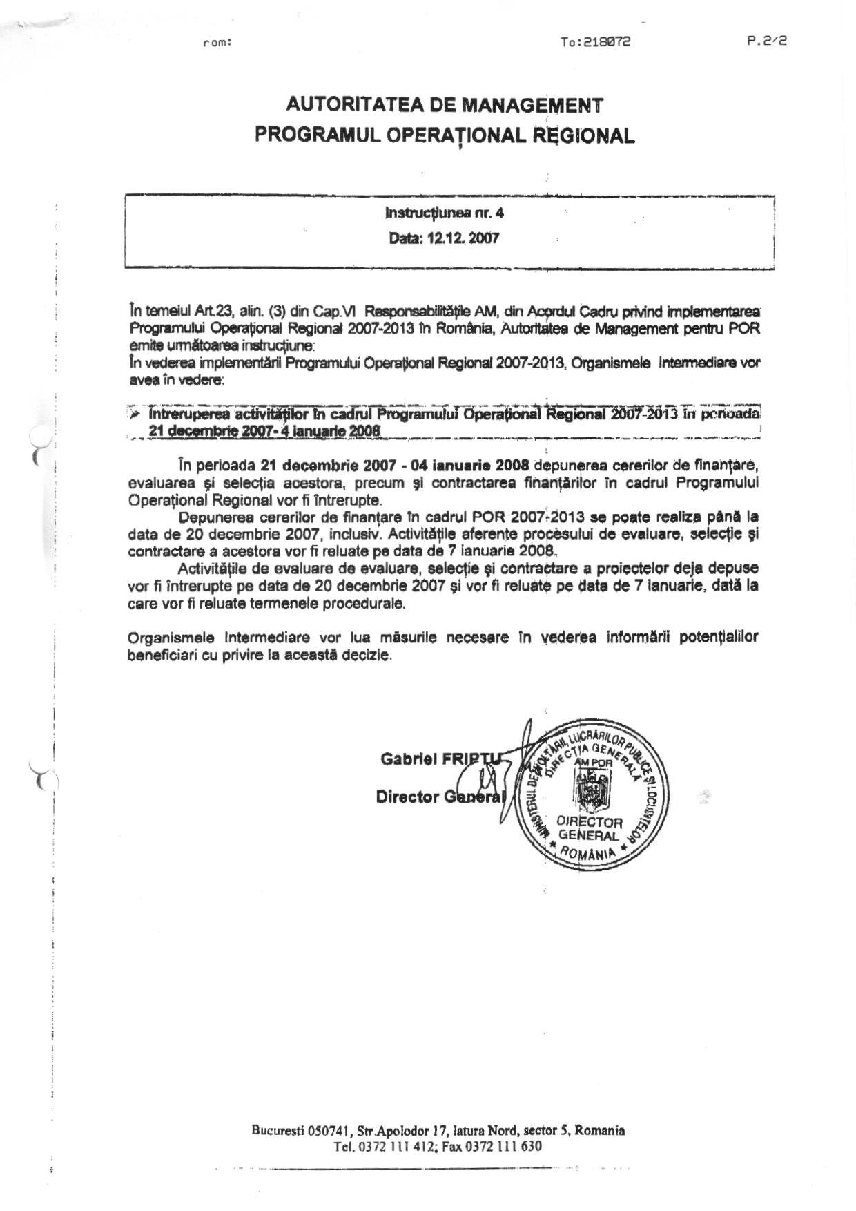 Anexat se regaseste Instructiunea nr. 4 privind intreruperea